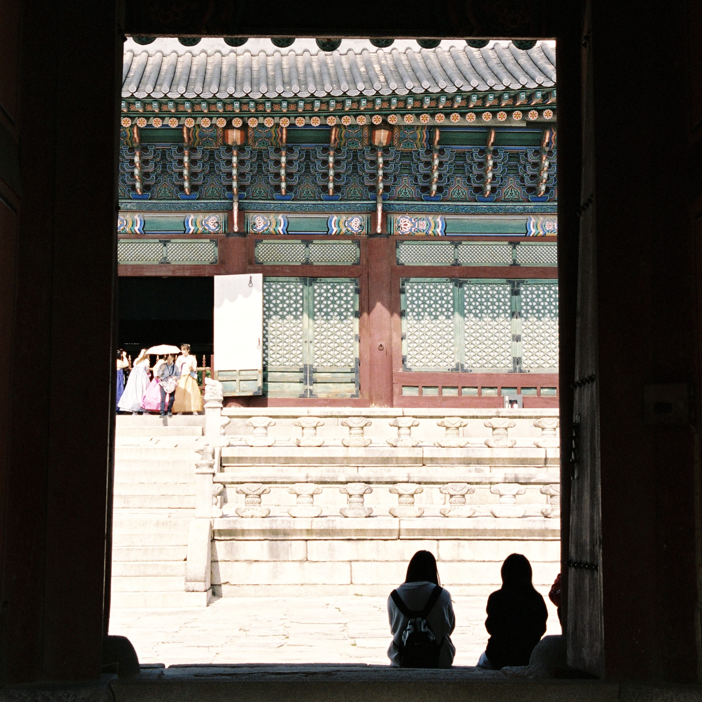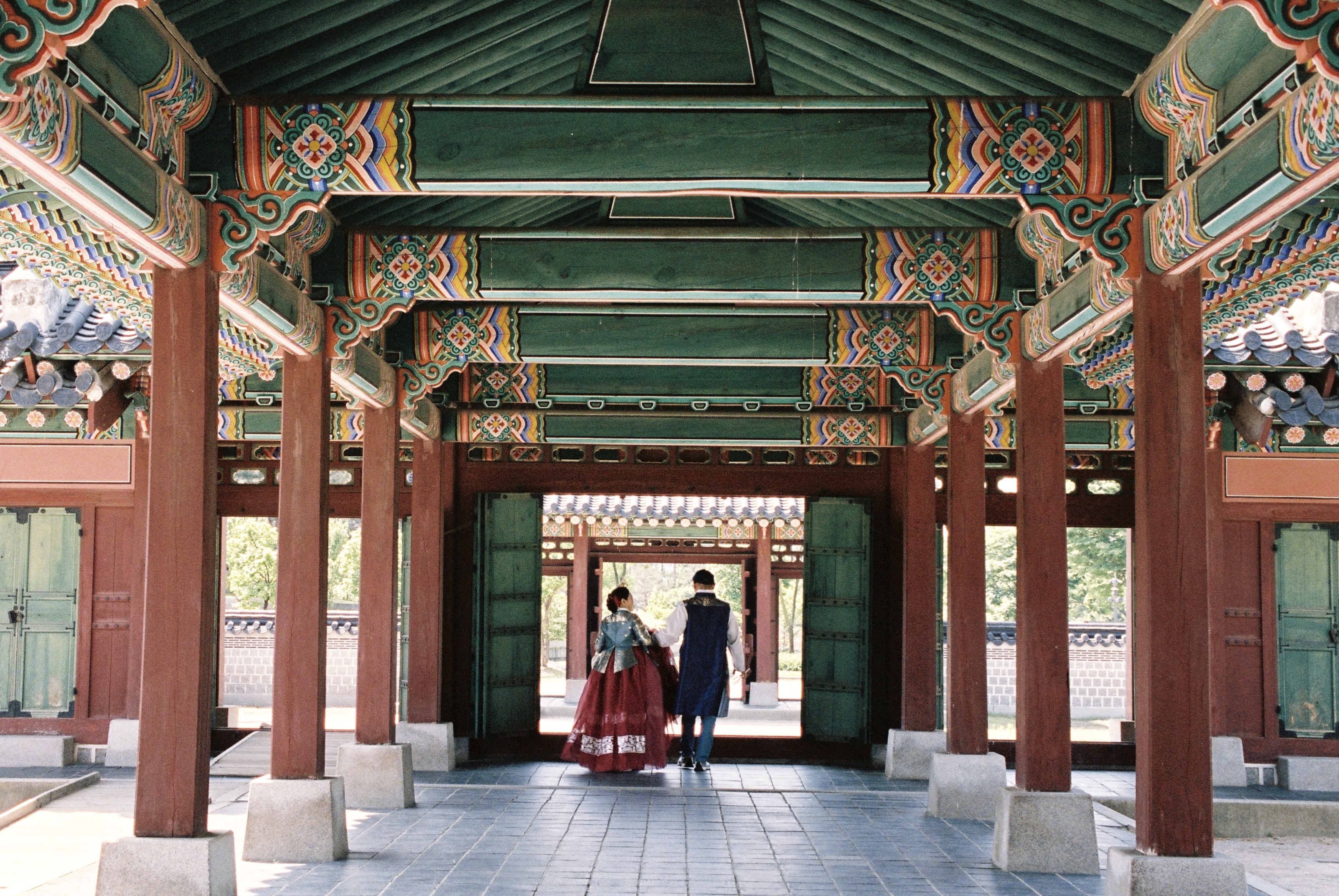 Friends and partners photographed in Gyeongbokgung Palace and Dongdaemun Design Plaza.